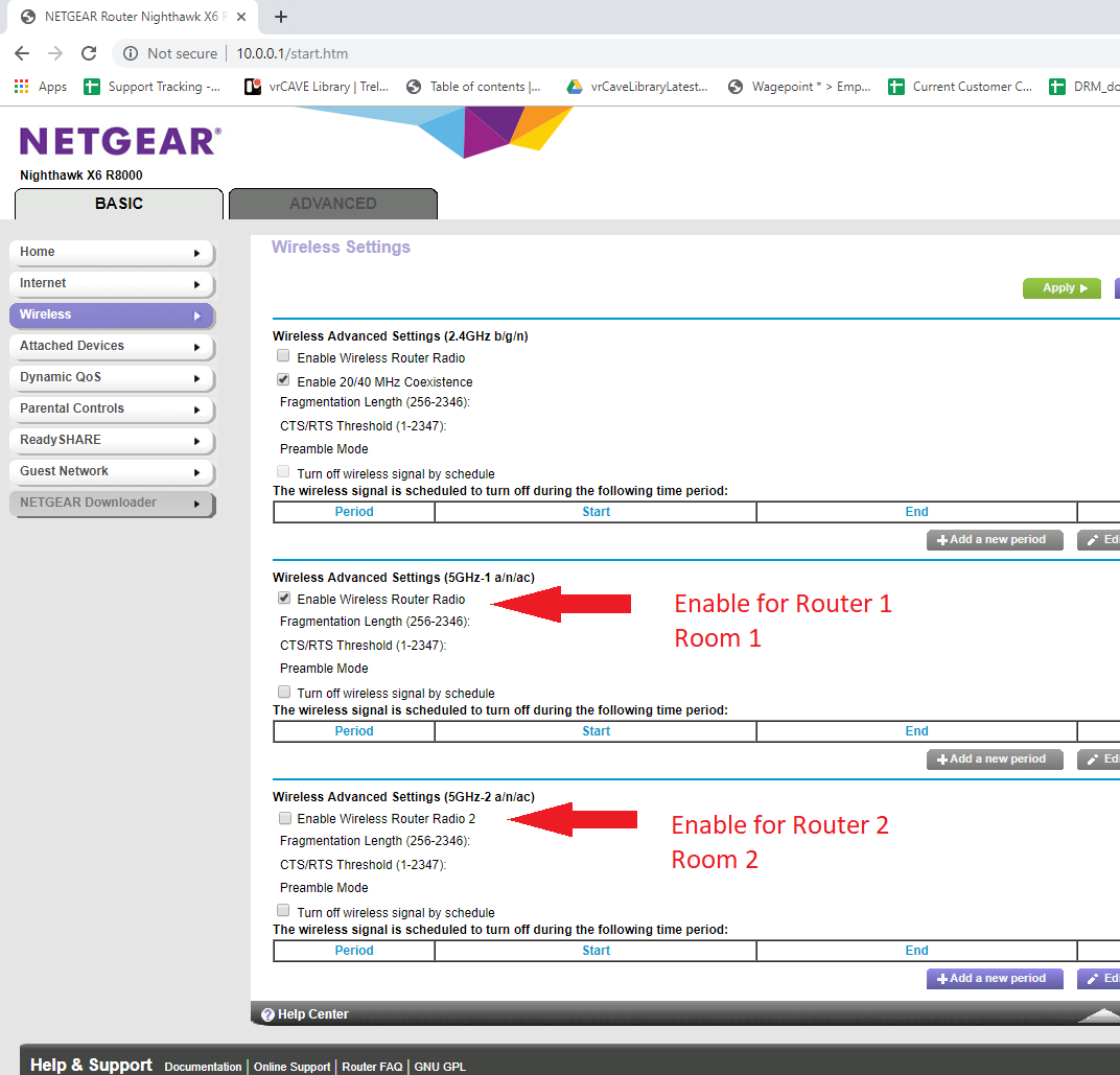 In the Basic tab, select Wireless, make sure only one of the wireless router radio is selected. for this room, Enable 5GHz-2