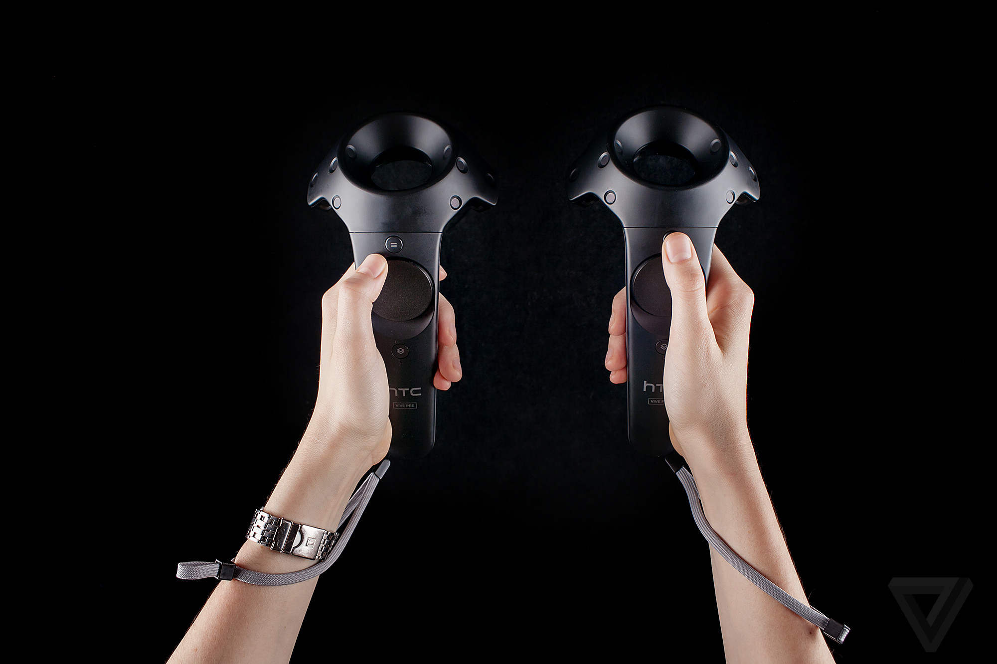 Then have player reach out, then place the VIVE controller into each of their hands, adjusting their grip as necessary. Wrist straps are recommended.