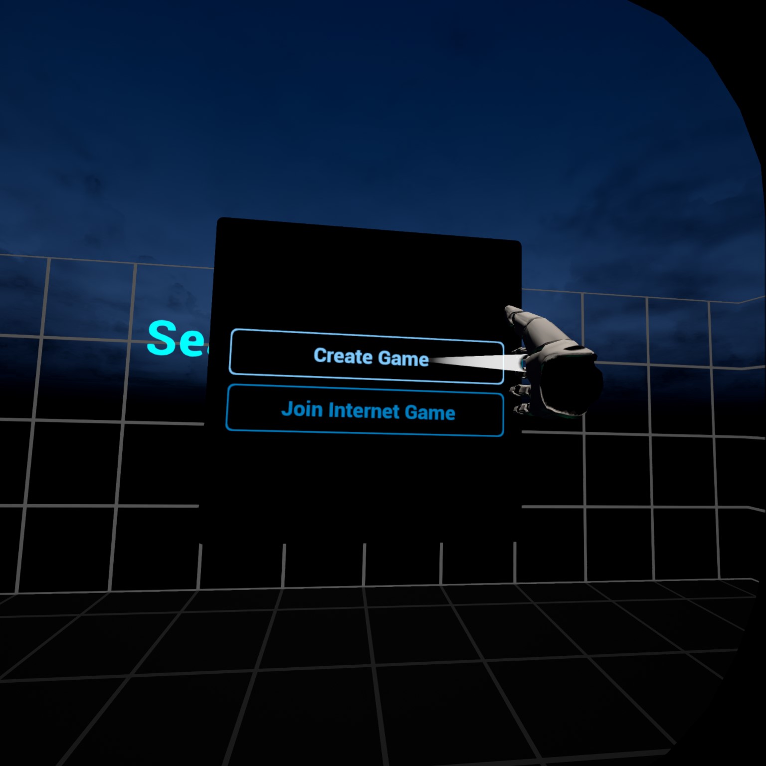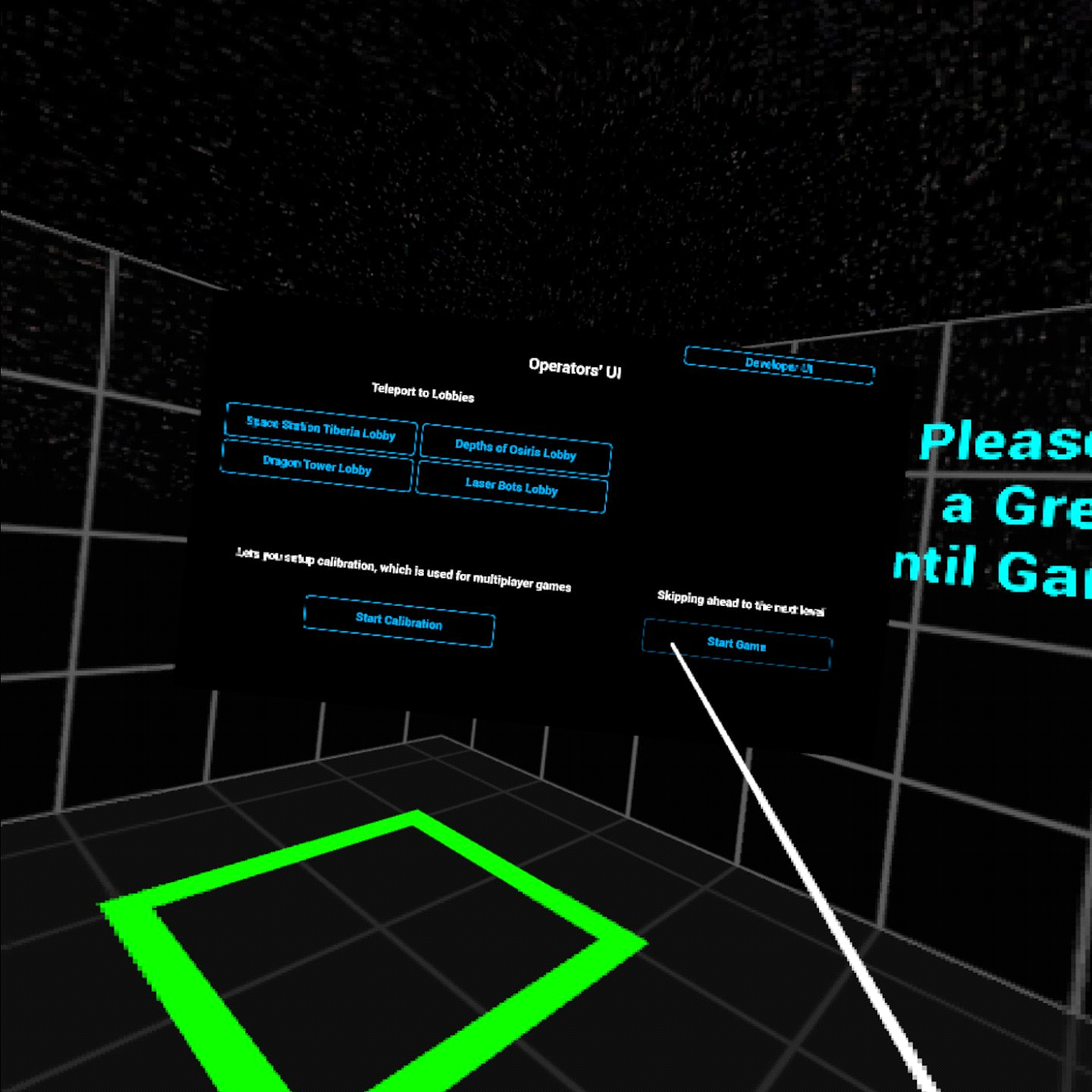- A menu will appear in the lobby, close the operators menu by pressing Left_Trackpad_Click and select Create Game wait a few seconds: the screen will fade to black and you’ll be transported to the