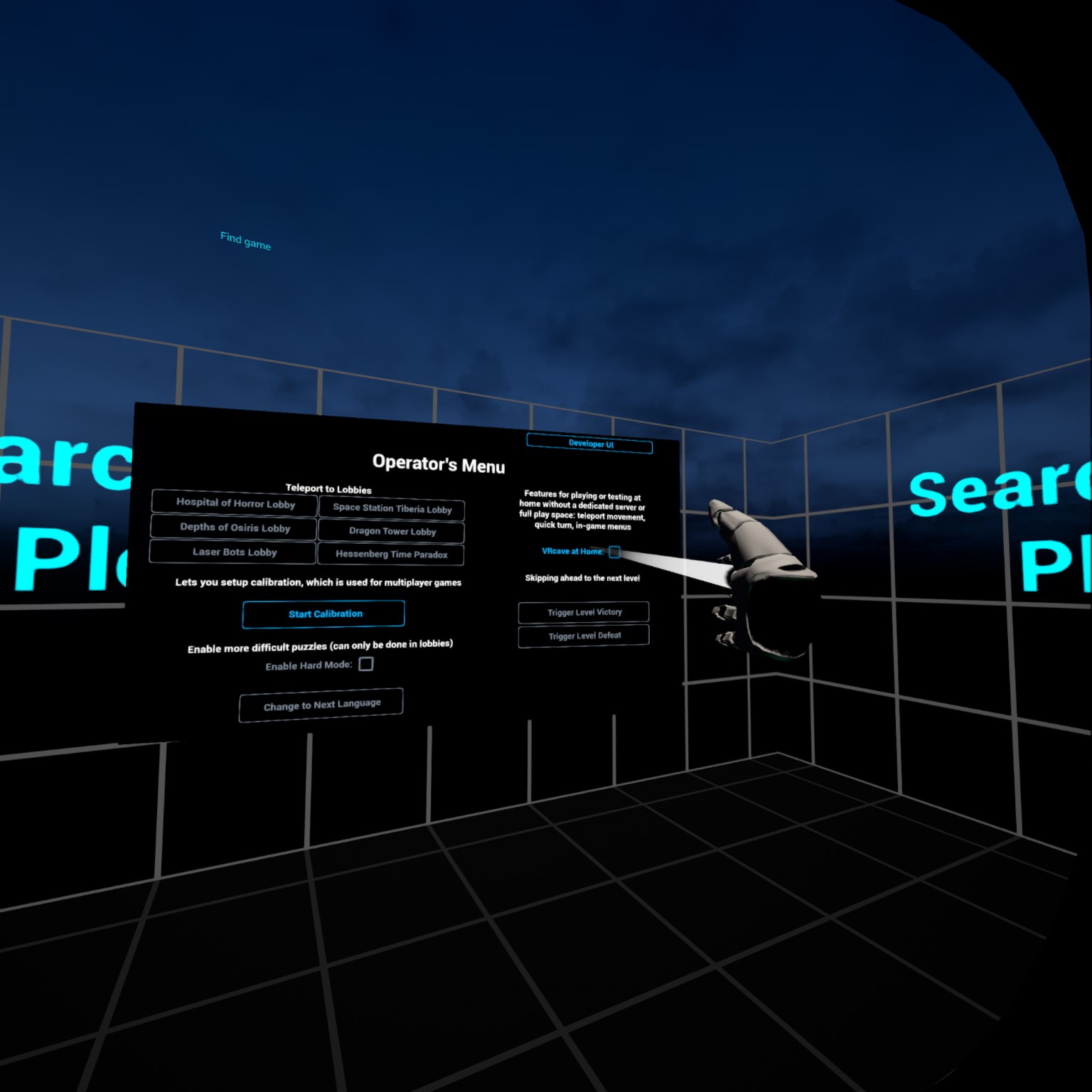 - The remaining games can be tested in the same fashion: from the lobby press Left_Trackpad_Click to open the operator menu